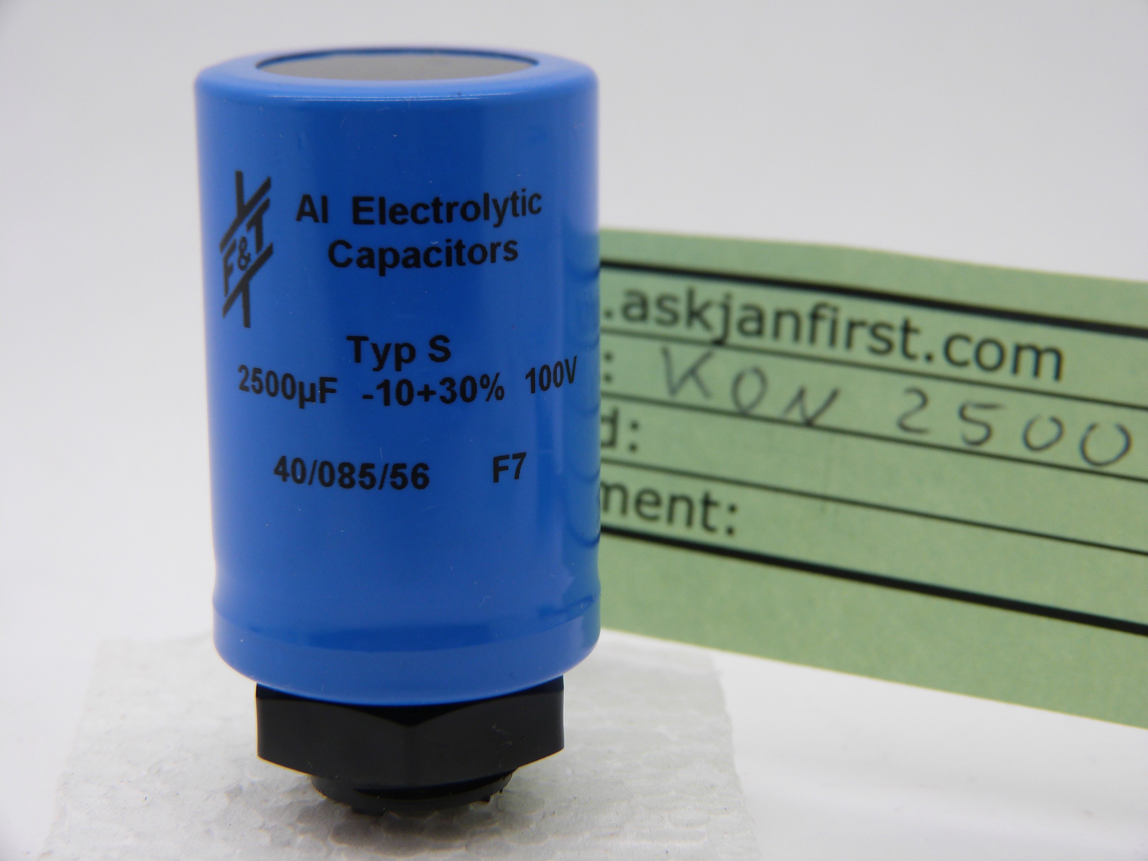 Electrolytic with 2500uF 100V in a very compact 30*45mm can. This is THE troubleshooter for early transistorised studio equipment. | Chimique à visser 2500uF 100V dans une boîte compacte de 30*45mm. Cela vous aide avec les appareils studio professionels. | 14,28 | 16,99 | FTCap