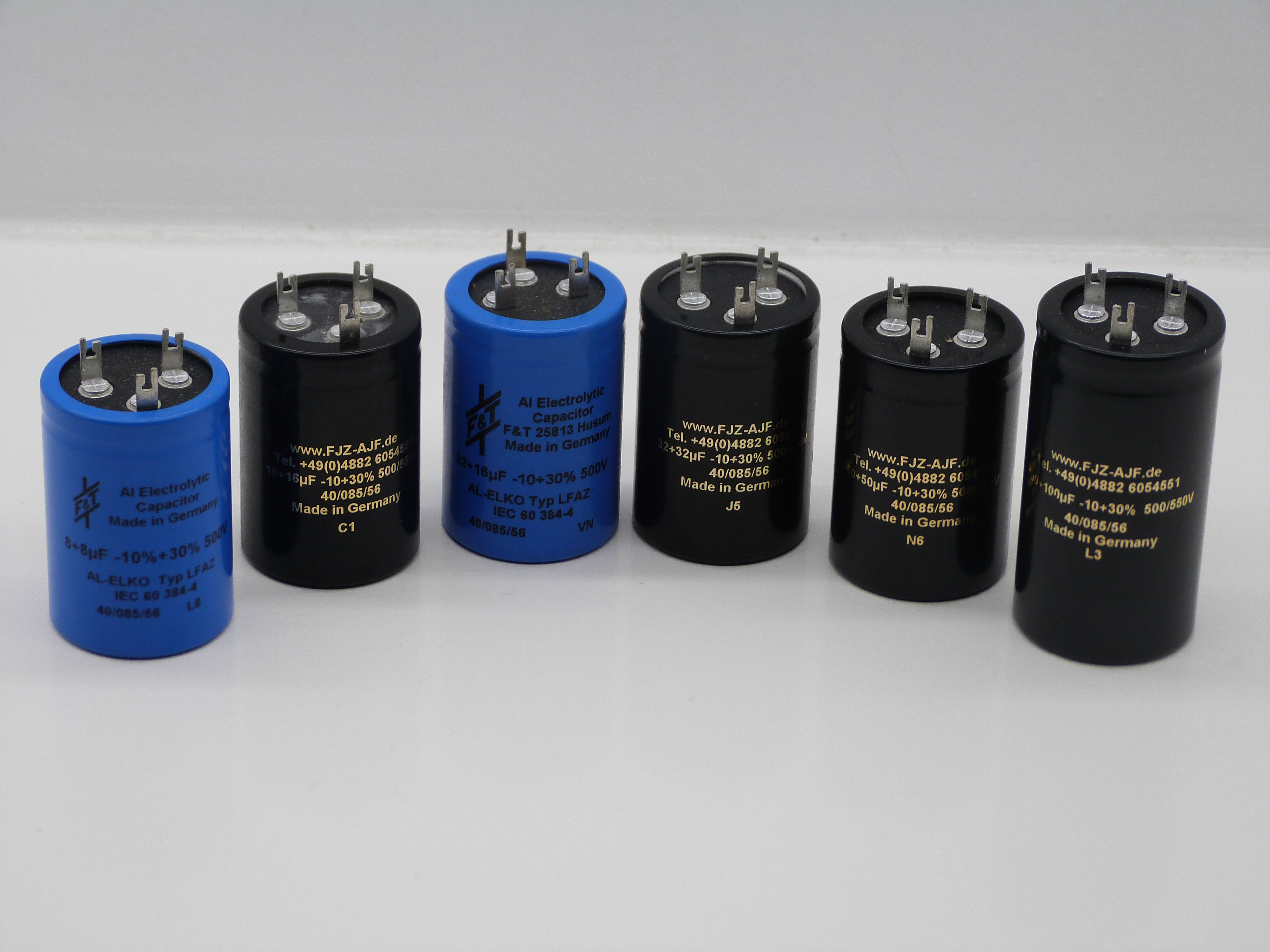 KONLF08-2 | Topfelko mit Lötfahne, 2*8 uF / 500 V, 35 mm Durchmesser | Radial electrolytic, current manufacture 2*8 µF 500 V, 35 mm diameter. | 2 * 8µF 500 V Fabriqué en Allemagne, 35 mm de diamètre | 11,95 | 14,22 | FTCap