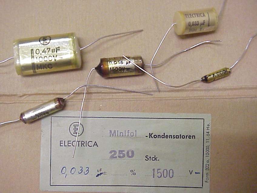 caps. Brand "Electrica". This is a brand owned by FTCap. Produced in Husum, Germany at the FTCap factory in the late 1960s. The production manager got wet eyes when I showed them to him. They reminded him of his beginnings at F&T some 30 years ago. Fine quality, true NOS caps. |
