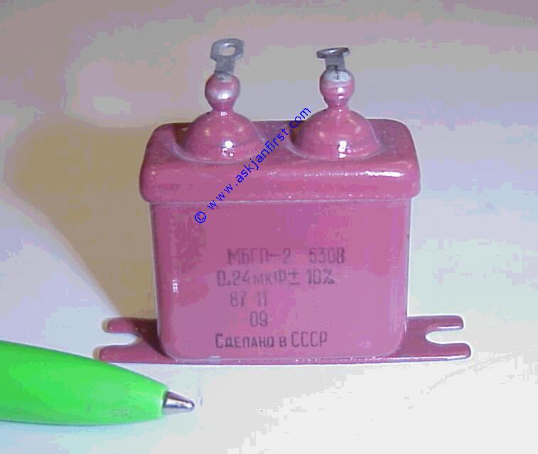 KON9204 | Russischer ÖP-Kondensator: Ölpapier zinnbedampft, 240nF 630 V. militärische Qualität, nagelneu | Russian tin-in-oil capacitor: Oiled paper with tin layer on it. 240 nF / 630 V, brand new NOS, fine coupling cap. | Condensateur papier huilé / étainé. 240 nF / 630 V Condensateur de couplage très bien. Qualité militaire. | 5,00 | 5,95 | Frag