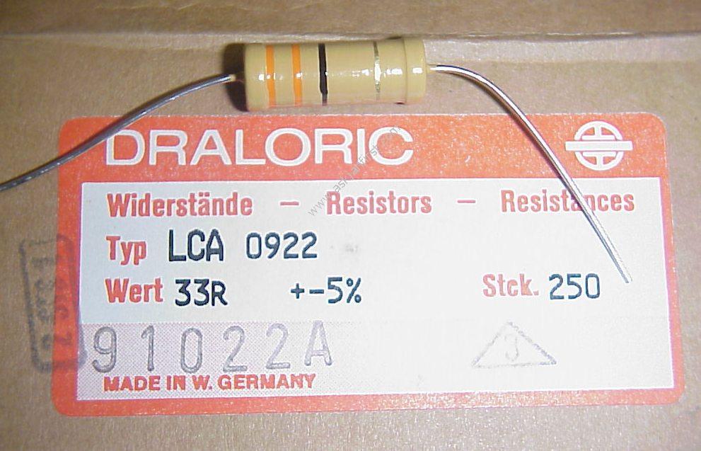 | WID8_ | Kohleschichtwiderstände 1,5-2 W 5% als sinnvolle Ergänzung zu unseren WID9-.. Draloric-Widerständen. Aktuelle Fertigung, hochwertige Qualität, Bauform ähnlich der alten Philips-Widerstände. Folgende Werte sind am Lager: | Since our offer of DRALORIC Carbon film resistors does not cover the whole range of resistors used we stocked up on current production carbon film resistors rated 1,5-2 W. Designed like the vintage Philips resistors. | Nos stock de résistances DRALORIC n´est pas complet. Alors nous avons stocké des résistaces au film de charbon de 1,5.2 W de puissance, production courante. | |||||